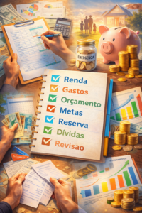 Como criar um planejamento financeiro pessoal passo a passo de forma simples e prática. Organize seu dinheiro, evite dívidas e construa segurança financeira mesmo ganhando pouco.