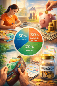 - A regra 50-30-20 ajuda na divisão do orçamento